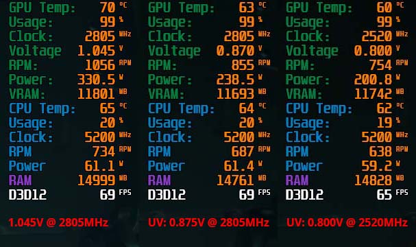 Celkovo sa však undervolting oplatí najmä používateľom, ktorí chcú dosiahnuť nižšiu spotrebu, nižšie teploty a tichšiu zostavu bez výraznej straty výkonu. Je to jednoduchý a bezpečný spôsob, ako „vytiahnuť“ z grafickej karty efektívnejší chod bez nutnosti HW zmeny a narozdiel od pretaktovania sa netreba báť, že HW bude mať nižšiu životnosť, alebo sa môže poškodiť, lebo UV je práve opak toho a napätie, spotreba a teplota sa nezvyšuje, práve naopak.